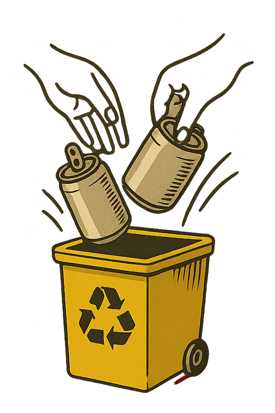 Cesta plechovky začíná v okamžiku, kdy ji vhodíte do žluté nádoby. Z nádob se pak odpad sveze na třídicí linku, kde se hliníkové plechovky pomocí moderních technologií oddělí od plastů a nápojových kartonů.